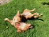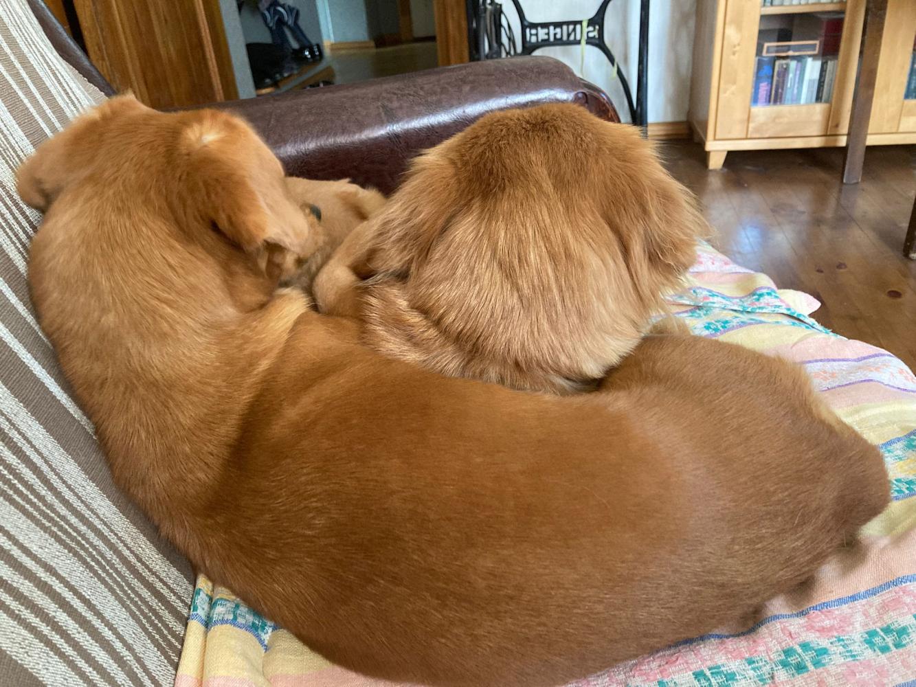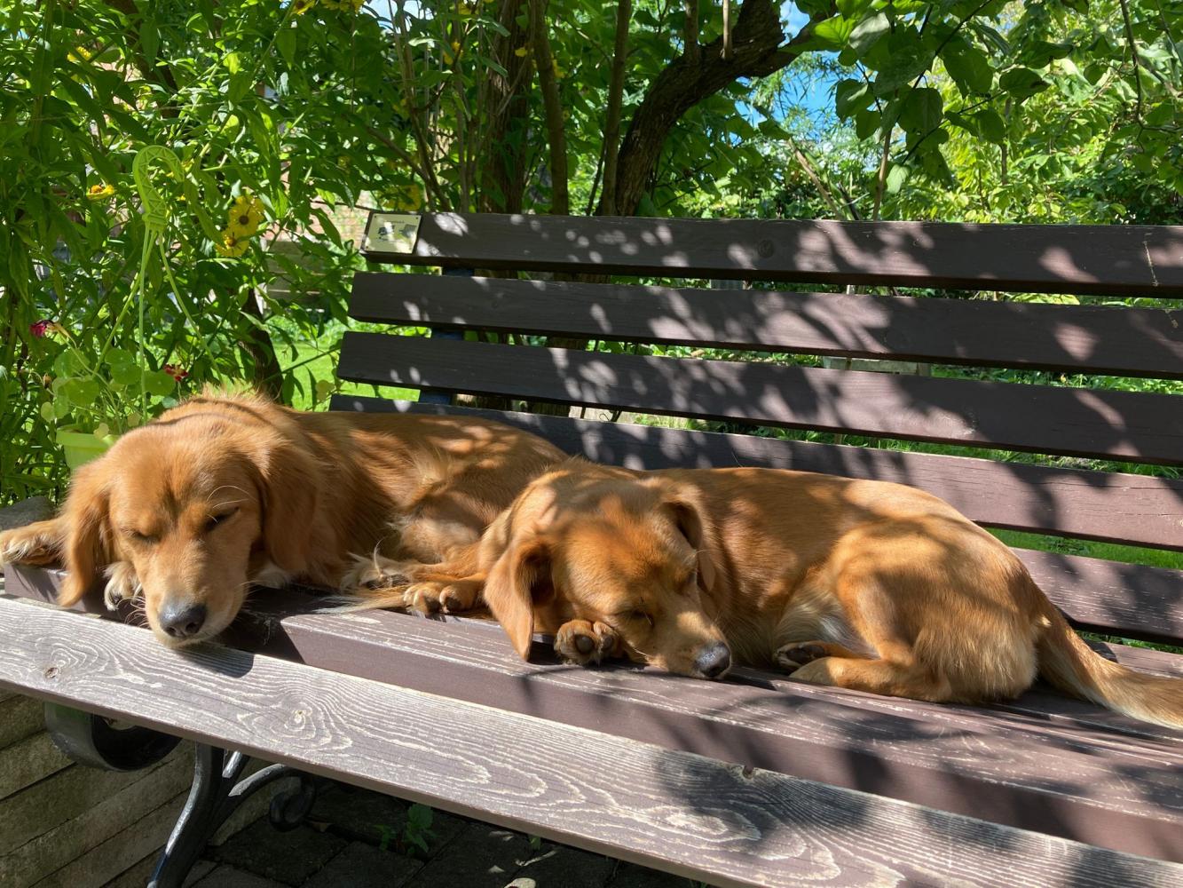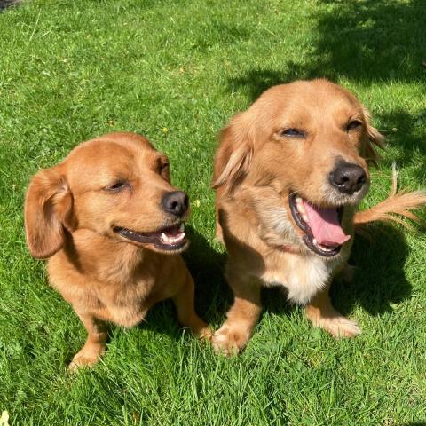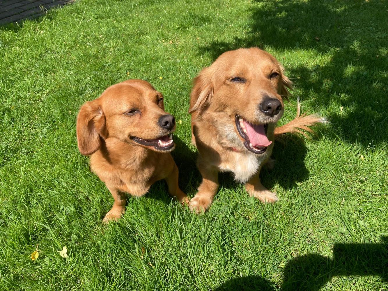 "Mājās iejutās labi, ar mājiniekiem un ciemiņiem ir ļoti draudzīgas, kaķi respektē un pāri nedara. Abas ir ļoti dzīvespriecīgas un bieži dauzās, vai sarīko skriešanās sacensības. Reizēm sastrādā kādas blēņas, piemēram, sagrauž kaķa mīļāko mantiņu, sadriskā žurnālu, nočiepj konfekti no somas, bet nedarbus dara, ja abas ir atstātas vienas mājās. Ļoti grib, lai cilvēks ir blakus.