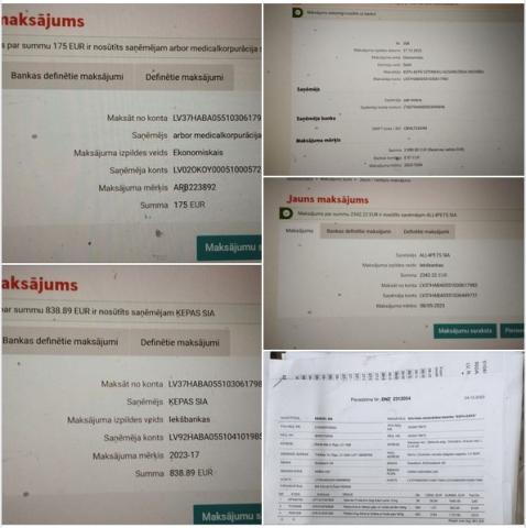 Šobrīd esam nomaksājuši šos četrus rēķinus, bet pietrūkst, lai varētu samaksāt par barību un lai varētu nomaksāt LLU pēdējos rēķinus.